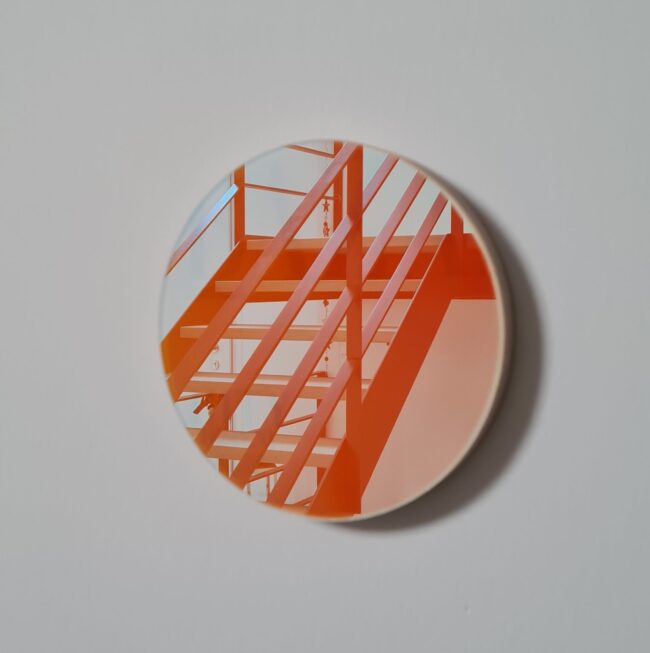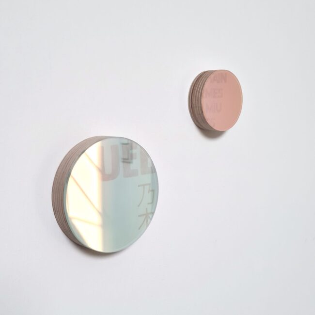 „REFLECT beleuchtet die mehr oder weniger heimliche Sehnsucht danach, einmal etwas zu sein, was man nicht ist und wohl nie sein wird. Wie Seifenblasen an der Wand schweben die kreisrunden Arbeiten, welche Bleistiftzeichnungen hinter dichroitischem Glas sind. Die Zeichnungen selbst sind Ausschnitte verschiedener Modezeitschriften und durch das besonders spiegelnde Glas wird der Betrachter praktisch Teil eines Magazincovers.“ Anna Herrgott.